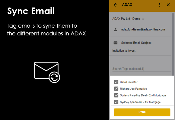 Once the email has been tagged with specific deal names and synced, it will be available in the ADAX platform.